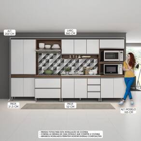 A Cozinha Sabrina Modulada foi desenvolvida para atender todas as suas necessidades do dia a dia com um design moderno, funcionalidade e versatilidade. A Cozinha Modulada é a tendência do momento e foi arquitetada com módulos úteis que vão facilitar a sua rotina diária, preparos dos alimentos e armazenamento dos utensílios e mantimentos, mantendo sua cozinha sempre organizada. Por se tratar de armários de cozinha modulados você pode ajustar os módulos conforme o espaço disponível e montar diversas modulações diferentes para deixar o ambiente muito mais aconchegante. A elegância fica por conta dos puxadores em perfil e os pés na cor prata dando um toque único de sofisticação. A Cozinha Sabrina é produzida com materiais de excelente qualidade, garantindo a durabilidade e vida útil. O melhor em móveis no design atual aliando conforto, qualidade e ótimos preços, só na Menu Móveis!