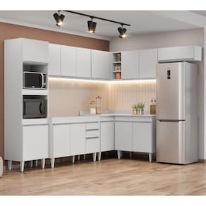O Armário de Cozinha Modulada de Canto 8 Peças CP01 Balcão Branco, da Lumil, é uma ótima opção para quem busca praticidade e organização.