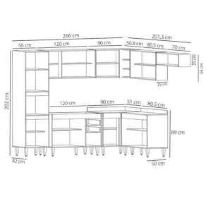 Conteúdo da Embalagem: 1 Balcão 120cm, 1 Armário Aéreo 120cm, 1 Armário Aéreo 70cm, 1 Armário Aéreo 80cm, 1 Balcão 80cm, 1 Balcão de canto, 1 Armário Aéreo de Canto, 1 Paneleiro.