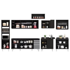 ProductHeight: 202 | Model: CP04 | Material: MDP | Origem: | Cor: PretoCinza | SupplierSimpleName: Armário de Cozinha Modulada de Canto 9 Peças CP04 Balcão PretoCinza - Lumil