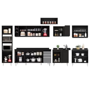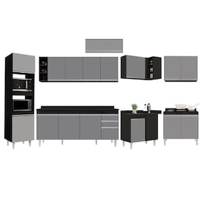 Model: CP05 | Origem: | Cor: PretoCinza | Material: MDP | ProductHeight: 202 | SupplierSimpleName: Armário de Cozinha Modulada de Canto 9 Peças CP05 Balcão com Tampo PretoCinza -