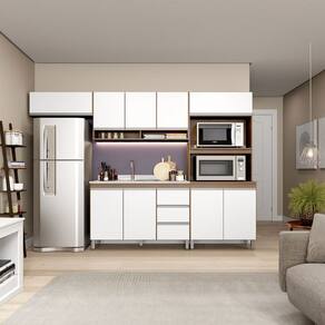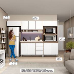 A Cozinha Sabrina Modulada foi desenvolvida para atender todas as suas necessidades do dia a dia com um design moderno, funcionalidade e versatilidade. A Cozinha Modulada é a tendência do momento e foi arquitetada com módulos úteis que vão facilitar a sua rotina diária, preparos dos alimentos e armazenamento dos utensílios e mantimentos, mantendo sua cozinha sempre organizada. Por se tratar de armários de cozinha modulados você pode ajustar os módulos conforme o espaço disponível e montar diversas modulações diferentes para deixar o ambiente muito mais aconchegante. A elegância fica por conta dos puxadores em perfil e os pés dando um toque único de sofisticação. A Cozinha Sabrina é produzida com materiais de excelente qualidade, garantindo a durabilidade e vida útil. O melhor em móveis no design atual aliando conforto, qualidade e ótimos preços!
