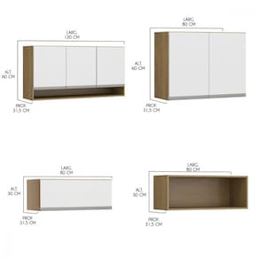 Dimensões do Armário Aéreo: Altura: 60 cm Largura: 120 cm Profundidade: 31,5 cm Peso: 24,5 kg