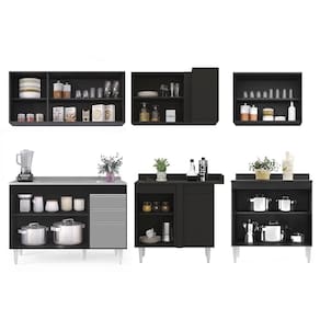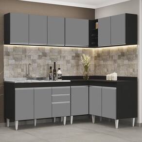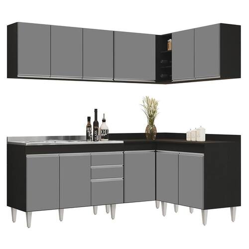 Transforme a sua cozinha em um ambiente prático e funcional com o Armário de Cozinha Modulado de Canto 6 Peças CP30 com Pia Inox Preto/Cinza, da Lumil, você terá tudo o que precisa ao seu alcance. Composto por 6 peças inteligentemente projetadas com balcão gabinete, armários aéreos, balcão de canto e balcão 2 portas, esse armário modulado oferece uma interna perfeita para organizar todos os seus utensílios.