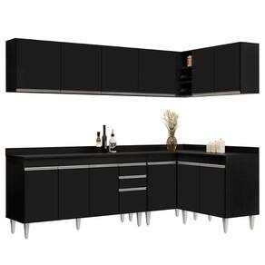 Material: MDP | Model: CP 32 | Origem: | SupplierSimpleName: Armário de Cozinha Modulado de Canto 6 Peças CP32 Balcão com Tampo Preto - Lumil | Cor: Preto | ProductHeight: 202 cm
