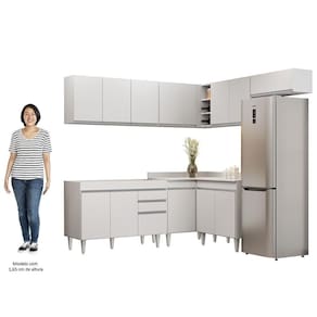 Além disso, o acabamento BP confere a esse jogo de cozinha completo uma maior resistência contra riscos e umidade, garantindo sua durabilidade por muito tempo. Já os pés ajustáveis permitem que você nivelar o móvel em qualquer tipo de piso. Para completar, o design contemporâneo dessa cozinha de canto se adapta facilmente a qualquer estilo de decoração, ao passo que a configuração de canto otimiza a circulação no ambiente.
