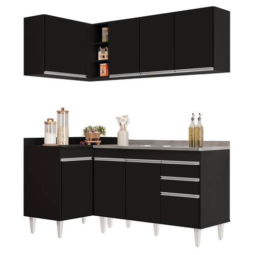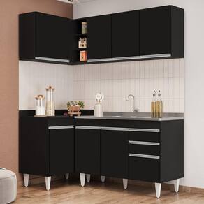 Prático, compacto e funcional, com o Armário de Cozinha Modulado de Canto Direito 4 Peças CP39 com Pia Inox Preto, da Lumil, você terá tudo o que precisa ao seu alcance, uma vez que esse armário modulado oferece uma interna perfeita para organizar todos os seus utensílios, pois é composto por 4 peças escolhidas minuciosamente, com balcão de pia, balcão de canto, e dois armários aéreos, sendo um de canto com nicho. Já a pia inox completa a cozinha e dá aquele toque final no visual e funcionalidade.