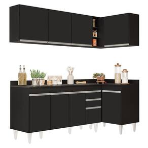 Procura uma cozinha prática e funcional?! Então, acaba de encontrar. Com o Armário de Cozinha Modulado de Canto Esquerdo 4 Peças CP50 Balcão com Tampo Preto, da Lumil, você terá tudo o que precisa ao seu alcance. Composto por 4 peças inteligentemente projetadas, esse armário modulado oferece uma interna perfeita para organizar todos os seus utensílios. Além de ser composto por peças essenciais, como balcão para pia 150cm, balcão de canto e armários aéreos, esse jogo de cozinha ainda conta com uma maior resistência contra riscos e umidade, garantindo sua durabilidade por muito tempo, graças ao acabamento em BP. Já os pés ajustáveis permitem você nivelar o móvel em qualquer tipo de piso. Para completar, o design contemporâneo dessa cozinha de canto se adapta facilmente a qualquer estilo de decoração, ao passo que essa configuração otimiza a circulação no ambiente. Bom demais, não é mesmo?! Então, aproveite cada centímetro do seu espaço com esse armário de cozinha versátil e funcional. Invista em qualidade e praticidade para sua cozinha hoje mesmo! ESPECIFICAÇÕESDimensões do Produto: Largura: : 200,8 x 90 cm. Altura: 202 cm. Profundidade: Superior: 29 cm / Inferior: 51 cm. Peso Total: 130 kg. **NÃO ACOMPANHA PIA INOX. Outras medidas: (Largura x Altura x Profundidade): Balcão Gabinete 150cm Marrocos: 147 x 81 x 50 cm. Balcão de Canto Denver: 90 x 89 x 51 cm. Armário Aéreo 150cm Argélia: 150 x 54 x 29 cm. Armário Aéreo de Canto Austin: 90 x 54 x 50,8 cm. Tampo para Balcão Gabinete: 150 x 8,5 x 50,5 cm. Características do Produto: Material da Estrutura: MDP 15 mm. Material do fundo: MDF 3mm. Peso Suportado: 114 kg distribuídos. Acabamento: Melamina BP. Escala de brilho: Fosco. Possui Tampo: Sim. Possui Pia: Não. Possui Portas: Sim. Material da Porta: MDP. Quantidade de Portas: 9 Portas. Tipo de dobradiças: Metálicas. Tipo de Porta: Convencional. Possui Gavetas: Sim. Material da Gaveta: MDP. Quantidade de Gavetas: 2 Gavetas. Tipo de corrediças: Metálicas. Possui Nichos: Sim. Quantidade de Nichos: 3 Nichos. Tipo de puxador: Alumínio. Possui Pés: Sim. Diferenciais: - Amplo espaço interno. - Puxadores em alumínio. - Design moderno. - Montagem Canto Esquerdo. - Pés Reguláveis em PVC. - Ambos balcões acompanham tampo. Sistema de Montagem: Parafusos e Cavilhas. Manual de Montagem: Sim. Complexidade da Montagem: Alta. Conteúdo da Embalagem: 1 Balcão 150cm, 1 Armário Aéreo 150cm, 1 Balcão de canto, 1 Armário Aéreo de Canto, 1 Tampo 150cm. Garantia do Fabricante: 90 dias contra defeitos de fabricação. Volumes: 5 Volumes. Montagem: Recomendamos que seja feita por um . Recomendação de Limpeza: Utilize pano levemente úmido. Observações importantes: - Produto para uso residencial em ambiente interno, não devendo ficar exposto diretamente ao sol, calor e umidades excessivas. - Pode haver alguma diferença de tonalidade entre a imagem e o produto real, por conta do tratamento de imagens e a calibração de cores do seu monitor. - As imagens são meramente ilustrativas, não acompanham objetos de decoração e eletrônicos. - Ao receber a mercadoria, o cliente deve verificar as condições da embalagem, caso haja alguma não assine o de . - Montagem, desmontagem e outras instalações serão de responsabilidade do cliente. Não nos responsabilizamos, no ato da , por subir escadas/elevadores ou pelo por guincho em apartamentos. Eventuais despesas são de responsabilidade do comprador. - Confira as dimensões do produto e certifique-se de que passará normalmente por supostos elevadores, portas, escadas e/ou corredores de sua residência.