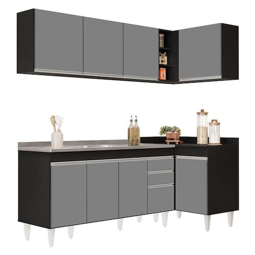 Model: CP 51 | Cor: PretoCinza | Origem: | SupplierSimpleName: Armário de Cozinha Modulado de Canto Esquerdo 4 Peças CP51 com Pia Inox PretoCinza - Lumil | Material: MDP | ProductHeight: 202 cm
