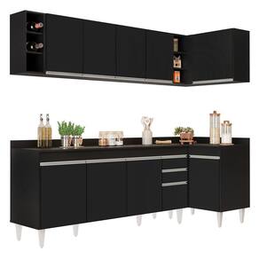Conteúdo da Embalagem: 1 Balcão 180cm, 1 Armário Aéreo 160cm, 1 Balcão de canto, 1 Armário Aéreo de Canto, 1 Nicho, 1 Tampo 180cm.
