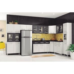 Armário De Cozinha Modulado Gourmet 7009 3 Portas C/Vidro Branco/Preto - Bertolini