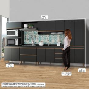 A Cozinha Modulada Sabrina foi desenvolvida para atender todas as suas necessidades do dia a dia com um design moderno, cheio de atitude, personalidade, funcionalidade, beleza e versatilidade. A Cozinha é a tendência do momento e foi arquitetada com módulos úteis que vão facilitar a sua rotina diária nos preparos dos alimentos e armazenamento dos utensílios e mantimentos, mantendo sua cozinha sempre organizada. Por se tratar de armários de cozinha modulados você pode ajustar os módulos conforme o espaço disponível e montar diversas modulações diferentes para deixar o ambiente muito mais aconchegante. A elegância fica por conta dos puxadores em perfil e os pés dando um toque único de sofisticação. A Cozinha Sabrina é produzida com materiais de excelente qualidade, garantindo a durabilidade e vida útil. O melhor em móveis no design atual aliando conforto, qualidade e ótimos preços!