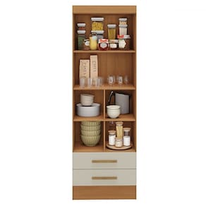 O(a) Armário de Cozinha Modulare 2 Portas 2 Gavetas Cinamomo/Off White - Loja é produzido em MDP na escala de brilho Fosco, e possui um grau de dificuldade de montagem: Médio.