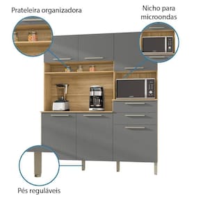 A Cozinha Montesa foi pensada nos mínimos detalhes para atender as necessidades do dia a dia, mantendo a elegância da sua cozinha ou área gourmet, com 2 gavetas e Nichos com espaço para forno ou Micro-ondas. Além de possuir compartimentos internos que facilitam a organização e praticidade. Produzida com material de qualidade, garantindo a durabilidade do produto. Medidas: [ A ] = 196 cm [ L ] = 160,7cm [ P ] = 38,8 cm MODELO: Armário de Cozinha Completa Montesa 6 Portas 2 Gavetas MARCA: Kit's Paraná COR: Frejó /Grafite MATERIAL: MDP 12mm PINTURA:Pintura UV ACABAMENTO:UV PORTAS: 6 portas TIPOS DE PORTAS: Bater GAVETAS: 2 gavetas GAVETAS SUPORTAM: 4 kg PRATELEIRAS: 3 PRATELEIRAS SUPORTAM: 5kg à 7kg POSSUI NICHOS: Sim PUXADORES: Plástico DOBRADIÇAS: Metálicas CORREDIÇAS: Metálicas PÉS: 6 MATERIAL DOS PÉS: Plástico POSSUI TAMPO: Sim MATERIAL DO TAMPO: MDP15 PESO: 64kg SUPORTA: 73kg SITEMA DE MONTAGEM: Pregos parafusos e cavilhas RECOMENDAÇÕES DE LIMPEZA: A limpeza do móvel de ser efetuada somente pano macio e moderadamente umedecido com água pura ou solução com sabão neutro. Evitar mover o produto com utensílios dentro do mesmo. Atentar para as especificações no esquema de montagem, sobre o peso suportado pelo produto. GARANTIA: 3 Meses Montagem não inclusa. Entregamos até a porta de entrada da casa do cliente ou até a portaria do condomínio. MODELO:: Armário de Cozinha Completa Montesa 6 Portas 2 Gavetas | MARCA:: Kit's Paraná | COR:: Frejó /Grafite | Medidas:: [ A ] = 196 cm [ L ] = 160,7cm [ P ] = 38,8 cm | MATERIAL:: MDP 12mm | PINTURA:: Pintura UV | ACABAMENTO:: UV | PORTAS:: 6 portas | TIPOS DE PORTAS:: Bater | GAVETAS:: 2 gavetas | GAVETAS SUPORTAM:: 4 kg | PRATELEIRAS:: 3 | PRATELEIRAS SUPORTAM:: 5kg à 7kg | POSSUI NICHOS:: Sim | PUXADORES:: Plástico | DOBRADIÇAS:: Metálicas | CORREDIÇAS:: Metálicas | PÉS:: 6 | MATERIAL DOS PÉS:: Plástico | POSSUI TAMPO:: Sim | MATERIAL DO TAMPO:: MDP15MM | PESO:: 64kg | SUPORTA:: 73kg | SITEMA DE MONTAGEM:: Pregos parafusos e cavilhas | RECOMENDAÇÕES DE LIMPEZA: : A limpeza do móvel de ser efetuada somente pano macio e moderadamente umedecido com água pura ou solução com sabão neutro. Evitar mover o produto com utensílios dentro do mesmo. Atentar para as especificações no esquema de montagem, sobre o peso suportado | GARANTIA:: 3 Meses | OBS:: Montagem não inclusa. Entregamos até a porta de entrada da casa do cliente ou até a portaria do condomínio. | PRODUTO: Armário de Cozinha | MATERIAL DA PORTA: Madeira Cor: Freijo Cinza