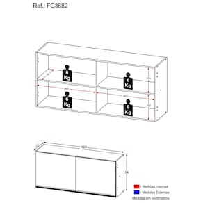 Dimensões do produto montado: Altura: 54cm | Largura: 120cm | Profundidade: 32cm *Você pode consultar as medidas internas na imagem técnica do produto.