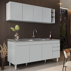 A funcionalidade realmente é a alma de uma cozinha moderna, e o Armário de Cozinha Nevada e Balcão Gabinete 180cm Com Pia Dallas Cinza Claro, da Lumil parece ser a peça central perfeita para quem busca estilo e organização.
