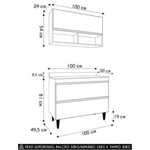 Conteúdo da Embalagem: 1 Armário Aéreo, 1 Balcão, 1 Tampo.
