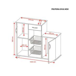 A Fruteira Diva New da Notável Móveis, é o móvel certo para deixar tudo no lugar certo na sua cozinha. Ela possui prateleirsa internas, espaços para utensílios, um tampo que pode apoiar um micro-ondas além de duas fruteiras em aramado para deixar suas frutas sempre a mão!