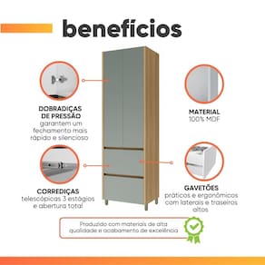 O armário paneleiro Raissa moderno e funcional, projetado para oferecer praticidade e durabilidade no dia a dia. Sua estrutura 100% MDF garante resistência superior, enquanto a pintura UV de alta qualidade proporciona acabamento sofisticado e proteção extra contra desgaste. Com amplo espaço interno, o móvel conta com 3 prateleiras bem distribuídas, perfeitas para armazenar panelas, utensílios e mantimentos de forma prática. As 2 portas com dobradiças Slow motion asseguram um fechamento suave e silencioso, trazendo mais conforto ao uso. Além disso, possui 2 gavetas equipadas com corrediças telescópicas de 3 estágios, que deslizam totalmente, facilitando o acesso. Para completar, os pés reguláveis garantem estabilidade, permitindo ajustar o armário conforme a necessidade do seu ambiente. Um móvel elegante, resistente e pensado para tornar sua cozinha muito mais organizada e funcional. Aproveite para conhecer também os outros módulos da linha e monte o conjunto perfeito para o seu espaço!
