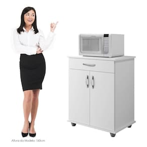 O Armario Manaus traz charme e elegancia a qualquer ambiente com seu design moderno e funcional. Possui uma gaveta espacosa, duas portas e uma prateleira interna, oferecendo organizacao ideal para pequenos espacos. Com tampo de 15 mm, e robusto o suficiente para suportar um micro-ondas com seguranca. Produzido com a tecnologia MDP Perfect, combina inovacao e sustentabilidade para maior durabilidade e facil limpeza, adicionando um toque de sofisticacao ao mobiliario. A pintura UV de alta resistencia facilita a manutencao e e ecologicamente responsavel, utilizando madeira de reflorestamento e contribuindo para a preservacao ambiental.