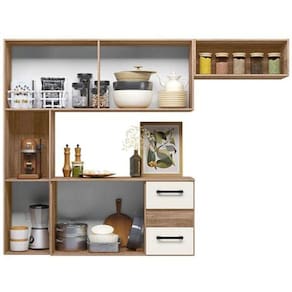 Armario de Cozinha suspenso 7 portas e 2 gavetas Juliete Nicioli A cozinha e o coracao da casa. Entao, nada mais justo que ter um espaco dinamico e organizado de modo a facilitar a rotina. Pensando nisso, a Nicioli criou a Cozinha Suspensa Juliete. Vem com a gente conferir como esse movel pode te ajudar!Nao importa se voce tem uma cozinha pequena, pois por ser um modelo de cozinha suspensa ela e perfeita para a otimizacao do espaco de circulacao e ainda facilita na hora da limpeza. Alem disso, possui otima divisao interna, o que contribui para dispor cada objeto em seu devido lugar. Sem contar que voce podera apostar em itens decorativos sobre o balcao com tampo ou ate mesmo deixar os eletrodomesticos a vista. Ai, vai do seu gosto e imaginacao.Nao perca tempo, tenha dias mais faceis com a Cozinha Compacta Suspensa Juliete. Medidas da Cozinha Juliete:Altura: 136 cmLargura: 180 cmProfundidade: 29 cm Caracteristicas:Medidas Internas (L x A x P)Balcao: 58 x 45,5 x 33 cmNicho Geladeira: 57,5 x 21 x 29 cmMaterial da Estrutura: MDP07 portas02 gavetas com corredicas metalicas02 NichosDesign suspenso.Amplo espaco interno.Limpeza com pano macio e levemente umedecido, nao utilizar material aspero. Nao utilizar solventes a base e de inflamaveis.Produto necessita montagem. Nao nos responsabilizamos pela montagem incorreta do produto.A garantia do produto e fornecida pelo fabricante durante 3 meses contra defeito de fabricacao. Mau uso ou montagem incorreta NAO estao inclusos.
