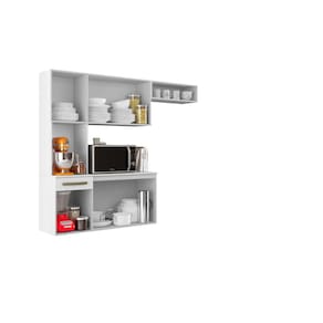 A Cozinha Suspensa Cosina é produzida em MDP de 12 mm de espessura, proporcionando resistência e durabilidade. Puxadores de plástico dando maior resistência. Corrediça em metal Lite proporcionando um melhor deslize em fechar e abrir a gaveta. Dobradiças das portas são metálicas com acabamento em verniz texturizado fosco, recebendo ainda verniz brilho nas portas.