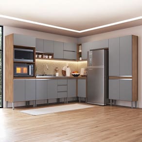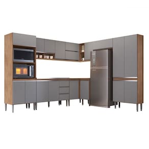 O(a) Armário de Cozinha Thalia 18 Portas 3 Gavetas Freijó/Cinza - Pnr Móveis é produzido em MDP na escala de brilho Semi-Brilho, e possui um grau de dificuldade de montagem: Médio.