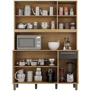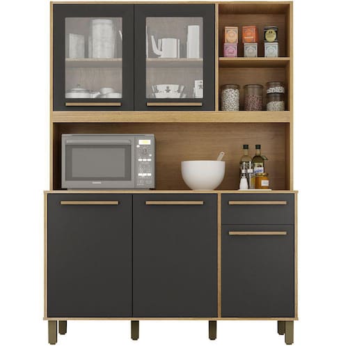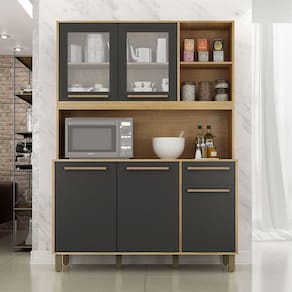 Armário de Cozinha Valdemóveis Rubi 5 portas 1 gaveta 3 nichos - Cinamomo/Grafite