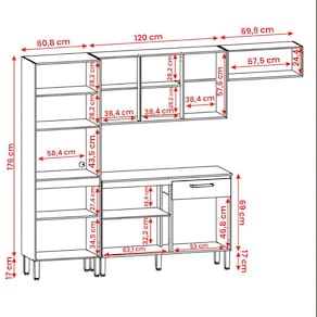 Suas repartições bem elaboradas podem acomodar todas as suas necessidades para com uma cozinha, além de dispor de um nicho para micro ou forno elétrico.