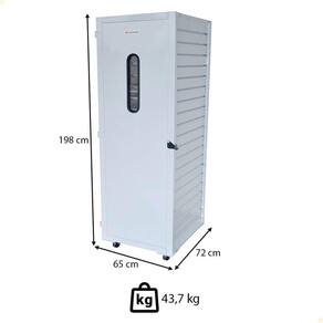A limpeza deve ser realizada regularmente com pano macio e detergente neutro, evitando o uso de produtos abrasivos para preservar o acabamento do equipamento. Altura: 198 cm | Largura: 65 cm | Profundidade: 72 cm | Quantidade de níveis: 20 | Material: Aço | Peso Líquido: 59.0000 | Marca: Venâncio | EmbalagemComprimento-cm: 78 | Modelo: Não Informado | EmbalagemAltura-cm: 15 | EmbalagemLargura-cm: 200 | Dias Entrega Fornecedor: 1 | Cubagem: 0.234000