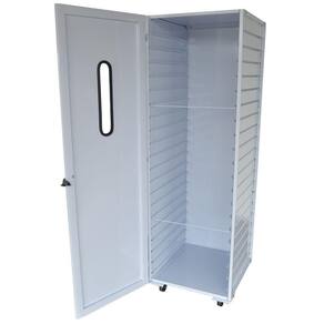 O armário é produzido totalmente em chapa de aço carbono SAE 1020, com pintura a pó eletrostática e base fosfatizada, garantindo maior resistência e durabilidade.