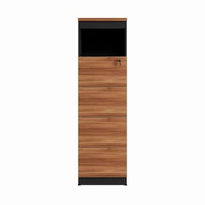 Altura: 160 cm Acabamento da Gaveta: BP Acabamento dos Pés: Pintura Ambiente Principal: Escritório Armário Suspenso: Não codigo_ean: 7900288257130 Complexidade da Montagem: Média: pode ser montado por mais de uma pessoa e/ou necessite de maior conhecimento para montagem Cor: Nogal / Preto Cor do Produto: Nogal / Preto Cor Flex: Não Cor Interna: Marrom Escala de Brilho: Fosco Espessura do Tampo: 25 mm Formato do Armário: Retangular Gaveta com Chave: 01 Itens Inclusos: 1 Armário, Kit Ferragens e Manual da Montagem. Linha ou Coleção: Corporate Localização do Nicho: Nicho em Cima Manual de Montagem e Instalação: https://product-hub-prd.madeiramadeira.com.br/481557696/documents/9dc43602-c021-49a3-bde7-9e5f413f5714326730165951760009622603.pdf Marca: F5 Office Material da Gaveta: MDP Material dos Pés: Metal Material Principal: MDP Montagem Flex: Não, o produto só pode ser montado conforme a imagem. Necessita Montagem: Sim Orientação do Armário: Vertical Origem do Produto: Nacional Pés Reguláveis: Sim Peso: 52 kg Peso Máximo por Gaveta: 15 kg Possui Espelho: Não Possui Mesa Retrátil: Não Possui Nicho: Sim Possui Pés: 04 Possui Portas: Não Possui Prateleiras: Não Quantidade de Armários: 1 Recomendações de Uso, Manutenção e Limpeza: Para uma limpeza mais efetiva, utilizar apenas pano macio e sabão neutro. Não utilizar produtos abrasivos. Sapatas Niveladoras: Sim Sistema de Montagem: Parafusos e buchas metálicas. Suporta Até (kg): 80 kg Tamanho do Armário: Alto (Acima de 150cm) Tipo de Armário: Totalmente Fechado Tipo de Corrediça da Gaveta: Metálica Telescópica Tipo de Puxador da Gaveta: Embutido Marca: Não Informado