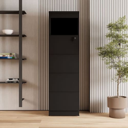Armário de Escritório 160cm Arquivo 4 Gavetas Puxador Cava Corporate Preto