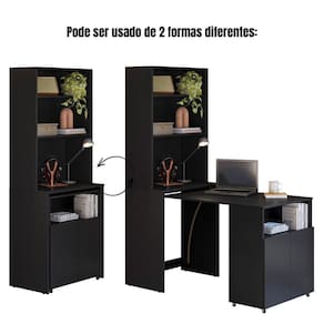Armário De Escritório Com Mesa Embutida Duo Kit`s Paraná Cor:black - Blush