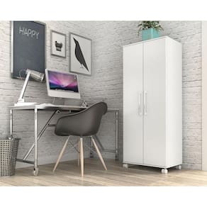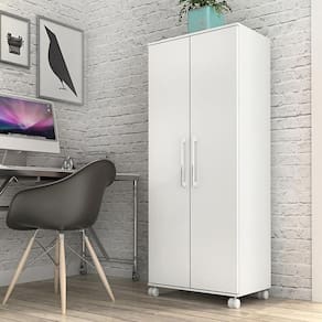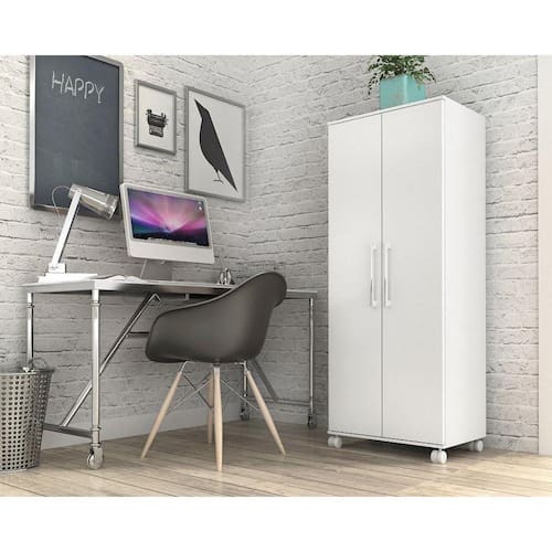 MdpARMARIO DE ESCRITORIO | Com 2 portas, prateleiras internas, dobradiças metálicas, puxadores cromados e rodízios faz do armário de escritório um móvel com design sofisticado, é própria para pessoas exigentes com organização, sendo feita em MDP de 15mm nas portas e MDP 12mm para prateleiras, laterais e tampos. Suporta pesos de até 8kg em suas prateleiras e 15kg no tampo suficiente para acomodar diversos materiais de escritório. Seu maior diferencial são os rodízios que facilitam a movimentação do produto para limpeza.