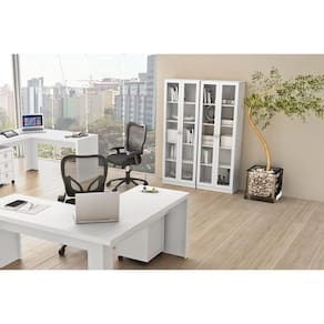 Armário de Escritório ME4115 c/ 2 Portas c/ Vidro Branco - Tecno Mobili