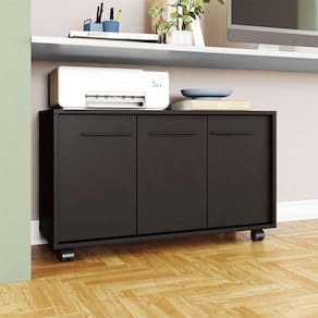 que tal o armário de escritório tessa? deixar o seu home e bem organizado pode ser difícil se você for do grupo que possui muitos papéis e pequenos objetos. por isso mesmo, o armário tessa tem 3 portas, te permitindo armazenar itens de uso diário, como pastas de documento, caixas organizadoras ou mesmo os cabos e carregadores que são necessários para suas atividades - tudo fica bem guardado e pronto para o uso. ah, o móvel ainda tem estrutura resistente e visual sóbrio, sendo perfeito para acompanhar qualquer tipo de decoração. ah, os pés com rodízio facilitam muito a limpeza do cômodo e até mudar o móvel de lugar de vez em quando :) Marca: Modern