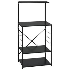 - Cor: preto- - Material: madeira projetada, aço- - Dimensões gerais: 23,6 “x 15,6" x 48,4" (C x L x A) - - Dimensões da placa de madeira superior: 22" x 7,9" x 0,6" (C x L x A) - - Dimensões da placa de madeira superior: 23,6 “x 15,6" x 0,6" (C x L x A) - - Dimensões da placa de madeira média e inferior: 22" x 15,6" x 0,6" (C x L x A) - - Tamanhos de postes pretos: 15,2" x 31,3" (L x A) - - Número de prateleiras: 4- - Lado com ganchos para acessórios- - Capacidade máxima de carga (total): 132,3 lb- - Capacidade máxima de carga por prateleira: 33,1 lb- - Montagem necessária: Sim- - Proposta 65 da Califórnia