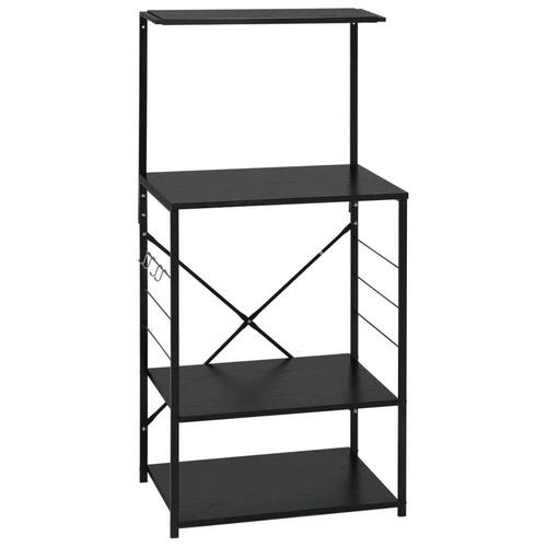 feita de madeira projetada, esta prateleira de cozinha é fácil de limpar com um pano úmido. A estrutura de aço resistente aumenta sua robustez. Esta prateleira tem 4 camadas, o que oferece amplo espaço para armazenar itens como torradeiras, temperos, pratos e qualquer outra coisa que você desejar. O gabinete inclui ganchos para acessórios laterais, o que o torna conveniente para pendurar alguns utensílios de cozinha. Você também pode usá-lo na sala de estar ou no escritório para exibir seus itens colecionáveis, molduras para fotos, etc.