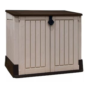 Armário Depósito Multiuso Baú Para Ferramentas De Jardim Garagem Piscina 875l Keter - Cor: Bege e Marrom