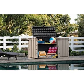 Ideal para organizar e armazenar objetos, ferramentas, apetrechos de pesca ou churrasco em espaços externos, o mini depósito Store -It-Out Keter é um dos itens mais vendidos da linha de armazenamento.