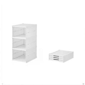 Design funcional: Estrutura empilhável que permite montar colunas e economizar espaço Modelo dobrável, facilitando o armazenamento quando não estiver em uso Tampa com abertura frontal prática, sem necessidade de desmontar a pilha