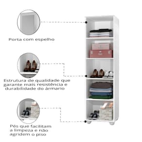 MODELO: Armário e Sapateira Multiuso com Espelho 1 Porta Branco J&A Móveis