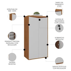 Ideal para quem quer organizar o escritório ou home office com praticidade e estilo, o Armário Escritório com Chave 2 Portas Corp A06 Freijó/Branco, da Mpozenato, oferece amplo espaço para armazenar documentos, materiais de escritório e outros itens essenciais.