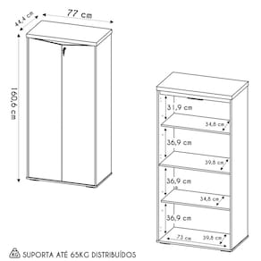 Com 2 portas e chaves para travamento, com esse armário alto você assegura a proteção dos seus pertences, principalmente daqueles que precisam de sigilo. Além disso, por contar com uma estrutura espaçosa, pode ser aproveitado facilmente como um armário multiuso, seja para guardar livros, caixas, arquivos, itens de escritório e o que mais preferir. Para completar, o design moderno e leve confere um visual sofisticado ao ambiente, ao passo que o acabamento em BP é bonito e extremamente resistente, garantindo alta qualidade e longa durabilidade. Demais, não é mesmo?!