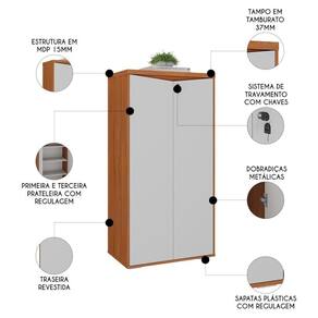 Ideal para quem quer organizar o escritório ou home office com praticidade e estilo, o Armário Escritório com Chave 2 Portas Corp A06 Freijó/Branco, da Mpozenato, oferece amplo espaço para armazenar documentos, materiais de escritório e outros itens essenciais.