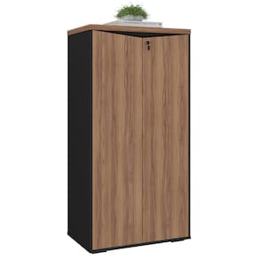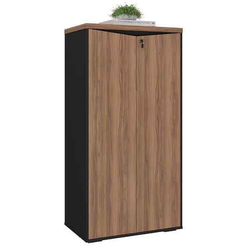 Ideal para quem quer organizar o escritório ou home office com praticidade e estilo, o Armário Escritório com Chave 2 Portas Corp A06 Nogal/Preto, da Mpozenato, oferece amplo espaço para armazenar documentos, materiais de escritório e outros itens essenciais.