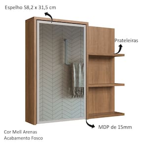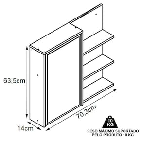 Características adicionais: acompanha 1 porta espelhada, prateleiras internas, dobradiças metálicas