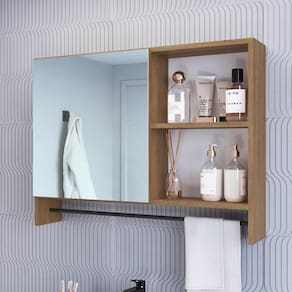 A espelheira ES8020 é produzida em MDP 15mm e acabamento em FF fosco. A estrutura do fundo é em MDF 3mm. Possui 1 porta de bater com espelho 3mm e dobradiça metálica ; prateleiras internas, 1 toalheiro metálico e 2 nichos. Necessita fixação na parede. Produto suporta até 10kgs. Conteúdo da embalagem: móvel, ferragens e manual de montagem. A fixação das peças e/ou acessórios é feita por parafusos e cavilhas. Para a limpeza do móvel utilizar pano levemente umedecido. Garantia de 03 meses contra defeitos de fabricação. Medidas do produto (AxLxP): 60x80x16cm. Peso do produto: 10,7kgs. Marca: Não Informado