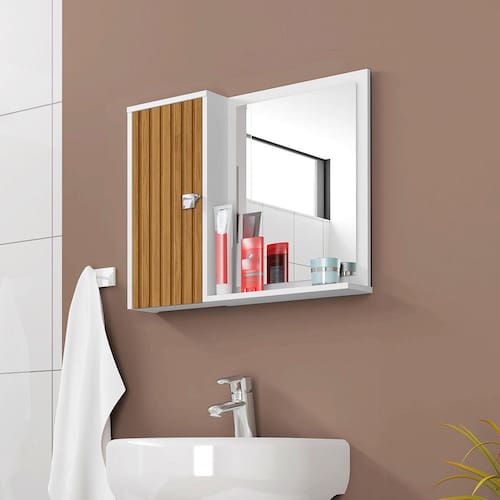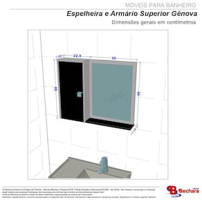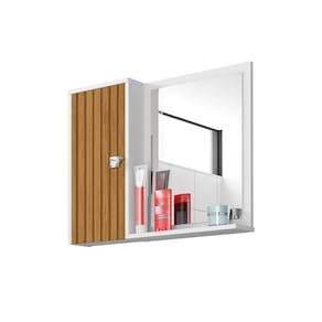 A Espelheira Gênova é tudo o que seu banheiro precisa! Extremamente funcional, ela possui uma porta com uma prateleira interna criando 2 nichos com amplo espaço interno, neles você poderá guardar todos os produtos de higiene pessoal que deseja, perfumes, dentre muito outros artigos de beleza que deseje armazenar na espelheira.